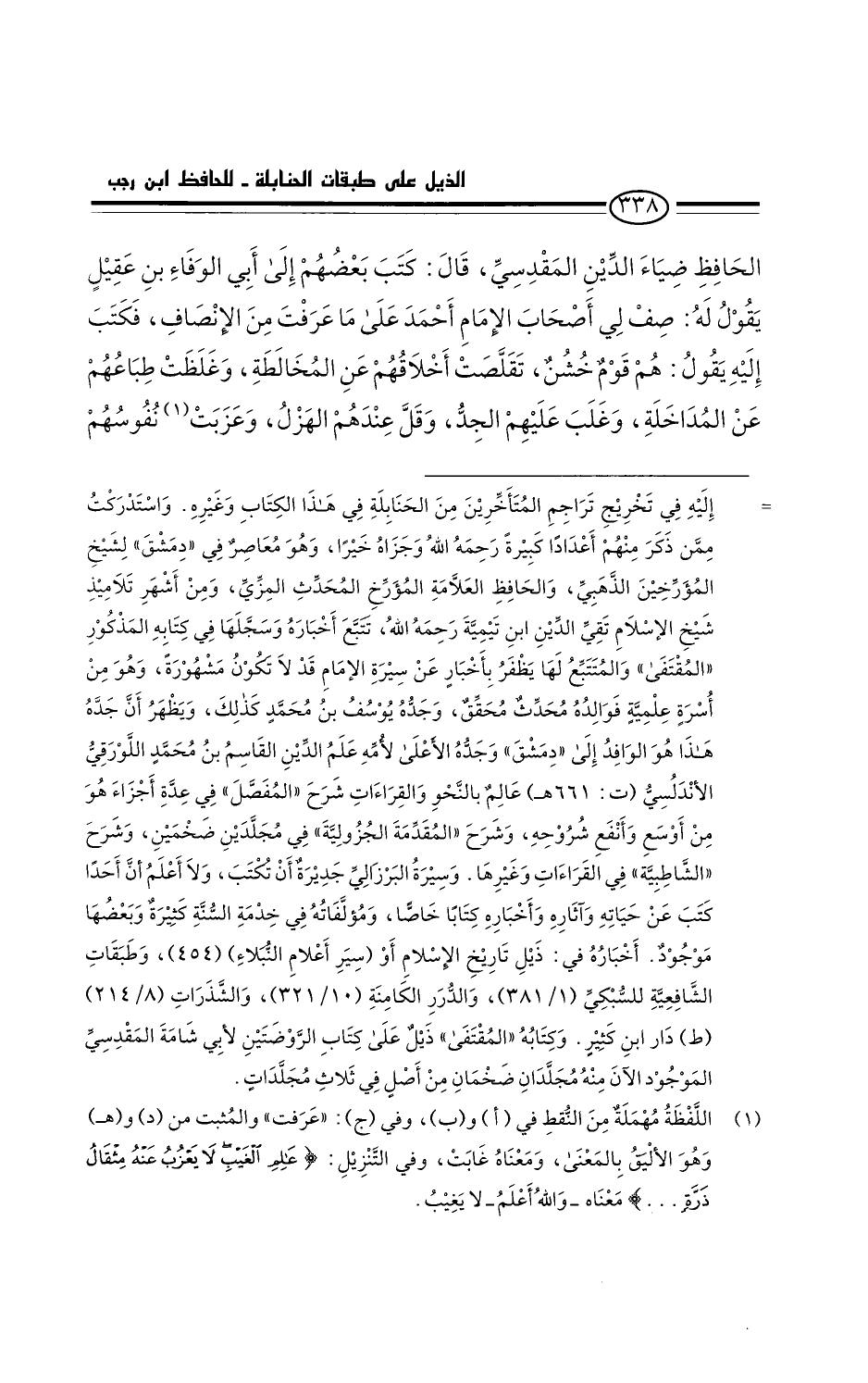 الحافظ ضياء الدين المقدسي، قَالَ: كتب بعضُهم إلى أبي الوفاء بن عقيل يقول له: صِف لي أصحابَ الإمام أحمد على ما عرفتمن الإنصاف.