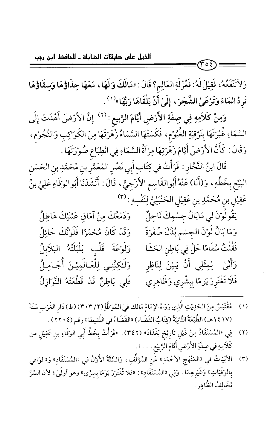 قال ابن النجار: قرأتُ في كتاب أبي نصر المعمر بن محمد بن الحسن البيع بخطه، وأَنْبَأَنَا عنه أَبُو القاسم الأزجي، قَالَ: أنشدنا أَبُو الوفاء علي بن عقيل بن محمد بن عقيل الحنبلي لنفسه: