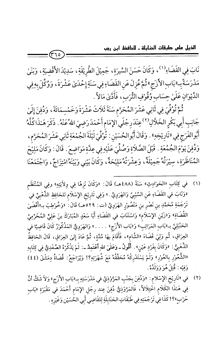 ثم توفي في ثاني عشر المحرم سنة ثلاث عشرة وخمسمائة. ودُفن إلى جانب أَبِي بَكْرٍ الخلال عند رجلي الإمام أحمد رَضِيَ اللَّهُ عَنْهُ. ذكر هذا كله أَبُو الفرج في تاريخه.