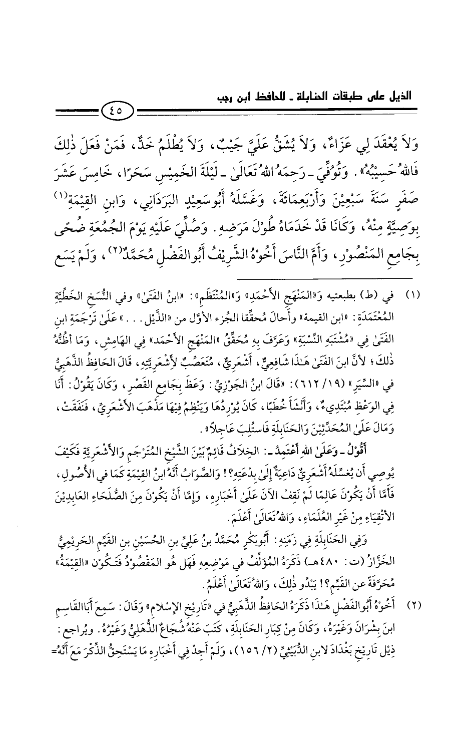 ولا يعقد لي عزاء، ولا يشق عليَّ جيب، ولا يُلطم خد. فمن فعل ذلك فالله حسيبه ". وتُوفي رحمه الله تعالى ليلة الخميس سحرا، خامس عشر صفر سنة سبعين وأربعمائة، وغسله أَبُو سعيد البرداني، وابن الفتى بوصية منه، وكانا قد خدماه طول مرضه.
