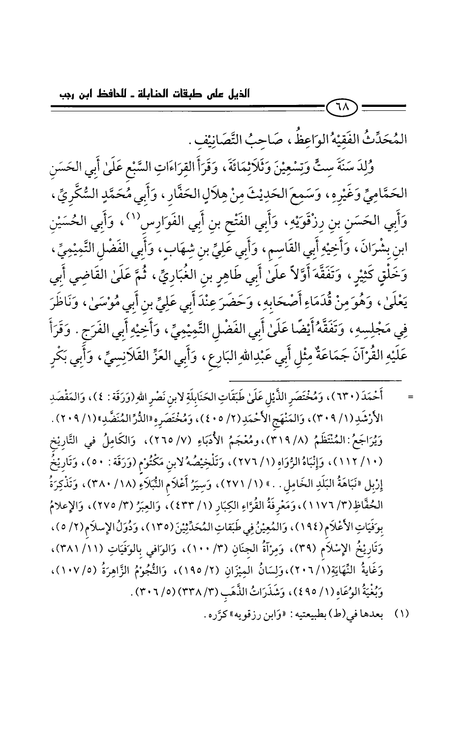 المحدِّث الفقيه الواعظ، صاحب التصانيف: ولد سنة ست وتسعين وثلاثمائة.