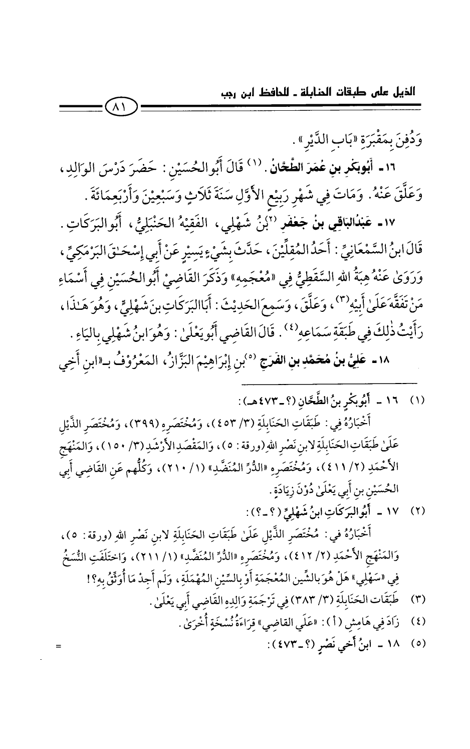 الفقيه الحنبلي، أَبُو البركات: قال ابن السمعاني: أحد المقلِّين. حدَّث بشيء يسير عن أبي إسحاق البرمكي، وروى عنه هبة الله السَقَطي في معجمه. وذكر القاضي أَبُو الحسين، في أسماء من تفقه على أبيه وعلق وسمع الحديث: أبا البركات بن شهلى، وهو هذا. رأيت ذلك في طبقة سماعه.