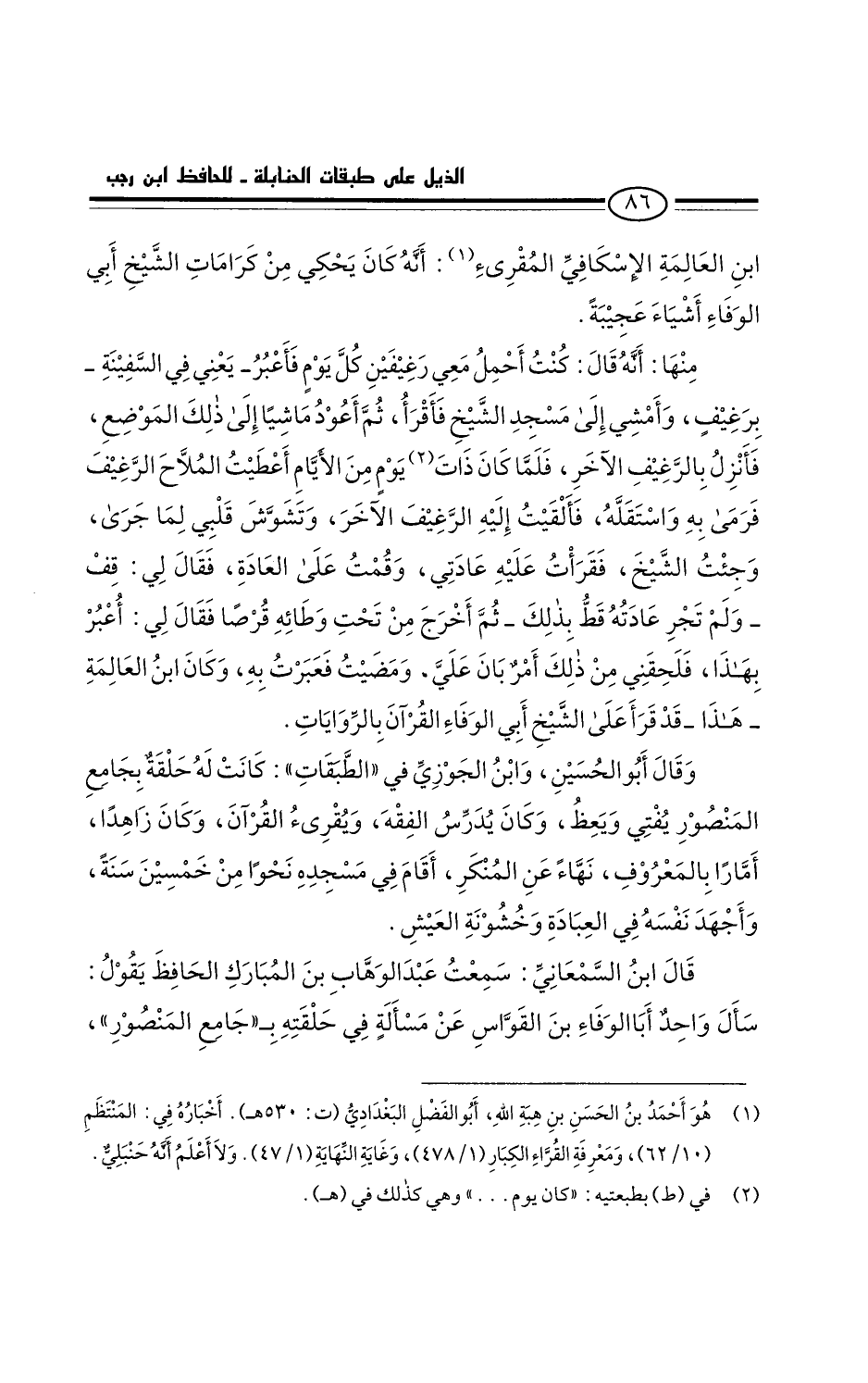 قال ابن السمعاني: سمعتُ عبد الوهاب بن المبارك الحافظ يقول: سأل واحدٌ أبا الوفَاء بن القواس عن مسألة في حلقته بجامع المنصور،