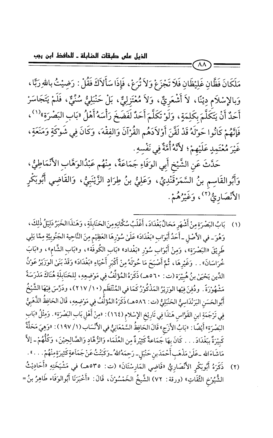 ملكان فظان غليظان، فلا تجزع ولا تُرَعْ، فإذا سألاك فقل: رضيتُ بالله ربا، وبالإسلام دينا لا أشعري ولا معتزلي بل حَنبلي سُنِّي. فلم يتجاسر أحد أن يتكلم بكلمة ولو تكلم أحد لفَضَخ رأسَه أهلُ باب البصرة، فإنهم كانوا حوله قد لَقّن أولادهم القراَن والفقه، وكان في شوكة ومنعَة، غير معتمد عليهم، لأنه أمة في نفسه.