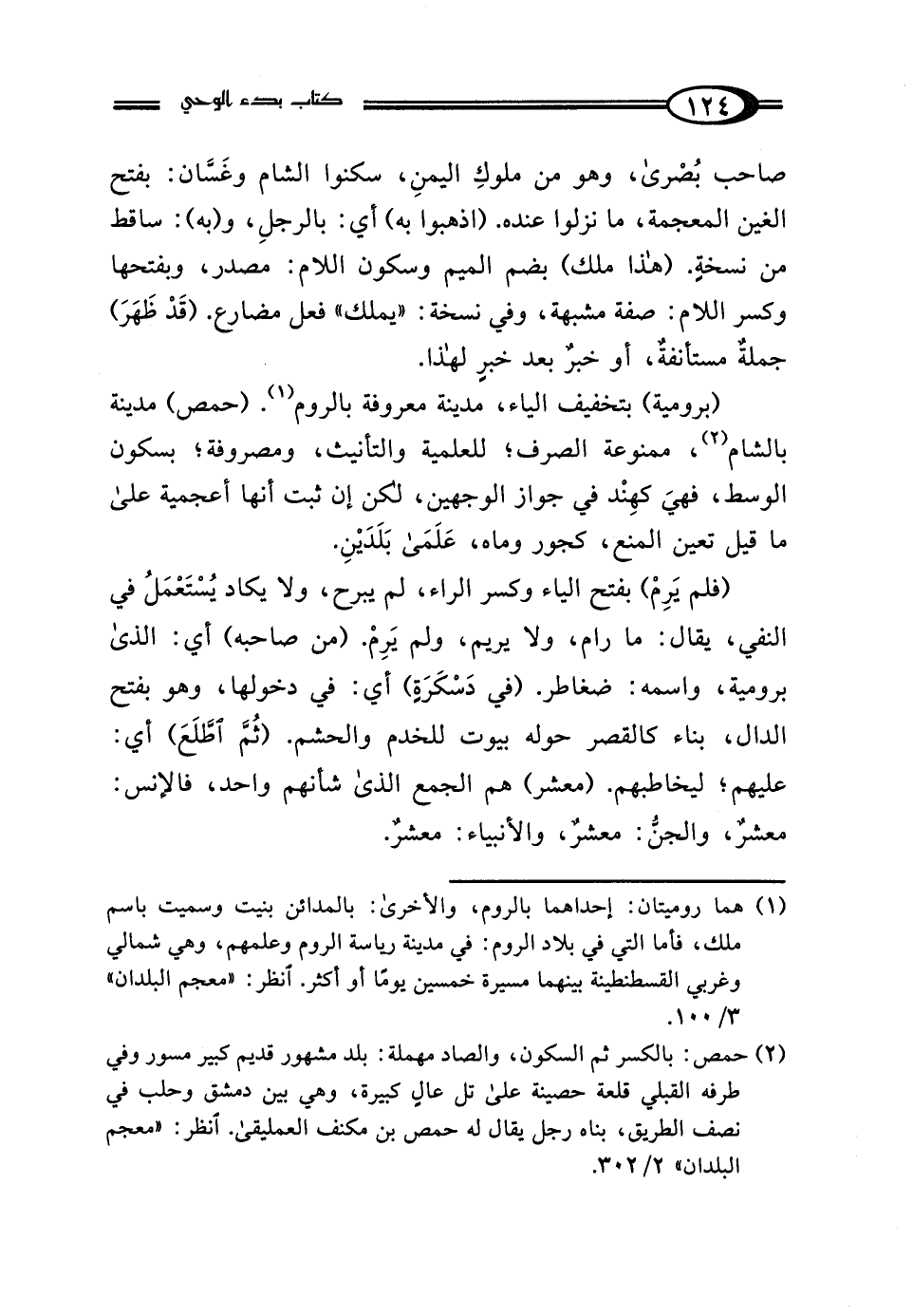 (برومية) بتخفيف الياء، مدينة معروفة بالروم (¬1). (حمص) مدينة بالشام (¬2)، ممنوعة الصرف؛ للعلمية والتأنيث، ومصروفة؛ بسكون الوسط، فهيَ كهِنْد في جواز الوجهين، لكن إن ثبت أنها أعجمية على ما قيل تعين المنع، كجور وماه، عَلَمَي بَلَدَيْنِ.