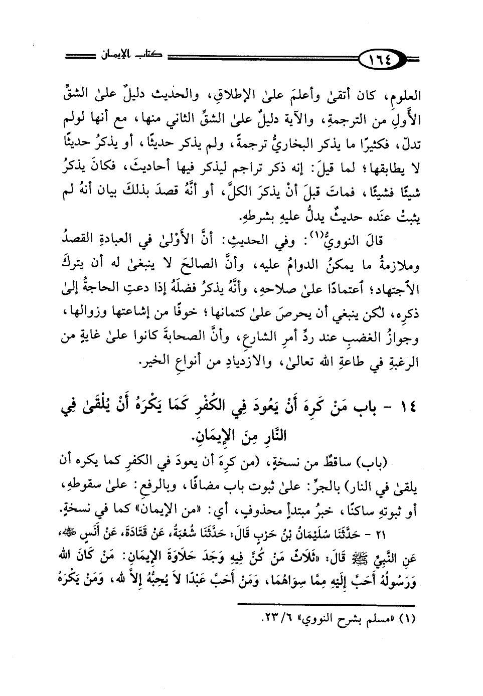 14 - بَابٌ: مَنْ كَرِهَ أَنْ يَعُودَ فِي الكُفْرِ كَمَا يَكْرَهُ أَنْ يُلْقَى فِي النَّارِ مِنَ الإِيمَانِ.