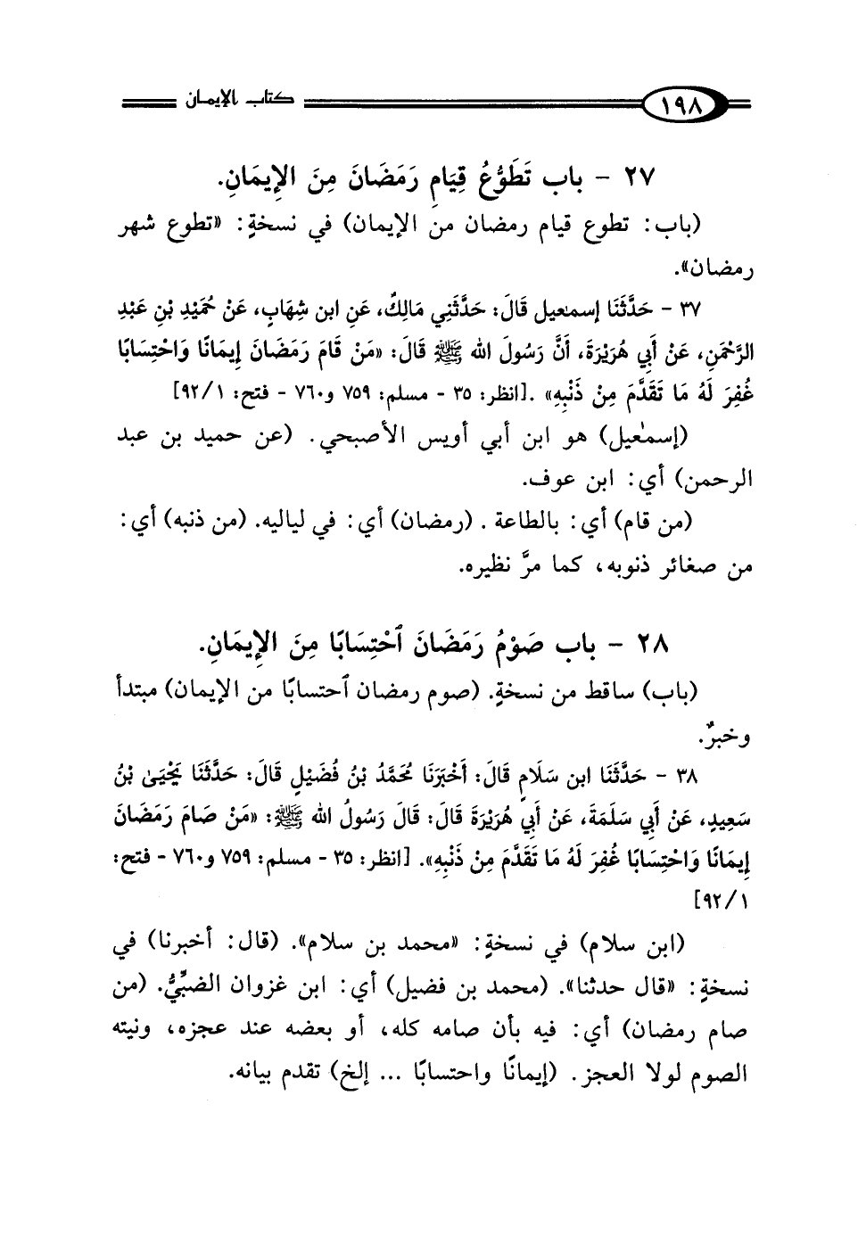 28 - بَابٌ: صَوْمُ رَمَضَانَ احْتِسَابًا مِنَ الإِيمَانِ.