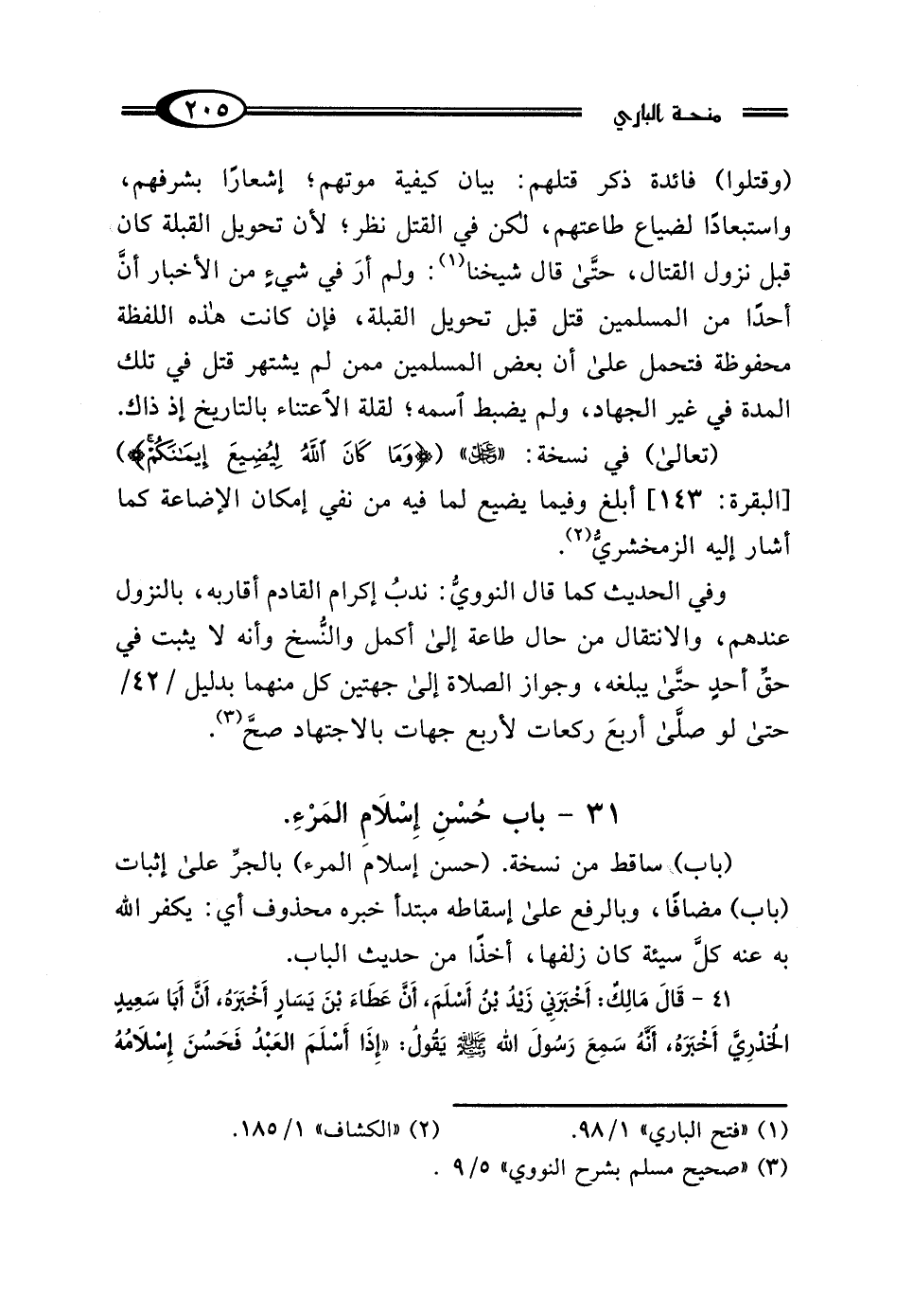 31 - باب حُسْنِ إِسْلامِ المَرْءِ.