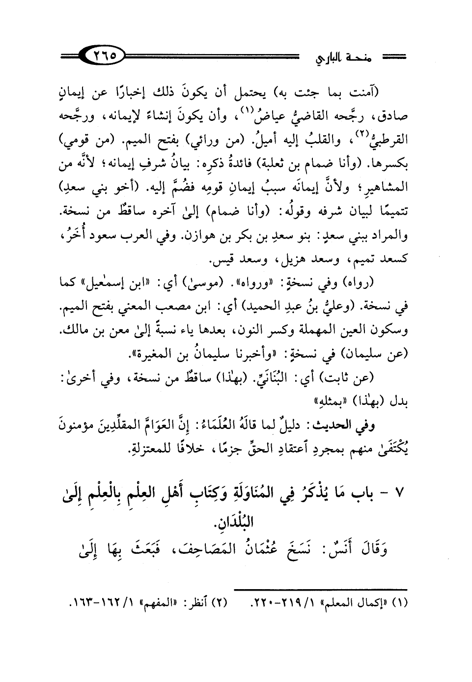 (آمنت بما جئت به) يحتمل أن يكونَ ذلك إخبارًا عن إيمانٍ صادق، رجَّحه القاضي عياضُ (¬1)، وأن يكونَ إنشاءً لإيمانه، ورجَّحه القرطبيُّ (¬2)، والقلبُ إليه أميلُ. (من ورائي) بفتح الميم. (من قومي) بكسرها. (وأنا ضمام بن ثعلبة) فائدةُ ذكرِه: بيانُ شرفِ إيمانه؛ لأنَّه من المشاهيرِ؛ ولأنَّ إيمانَه سببُ إيمانِ قومِه فضُمَّ إليه. (أخو بني سعدِ) تتميمًا لبيان شرفه وقولُه: (وأنا ضمام) إلى آخره ساقطٌ من نسخة. والمراد ببني سعدٍ: بنو سعدِ بن بكر بن هوازن. وفي العرب سعود أُخَرُ، كسعد تميم، وسعد هزيل، وسعد قيس.