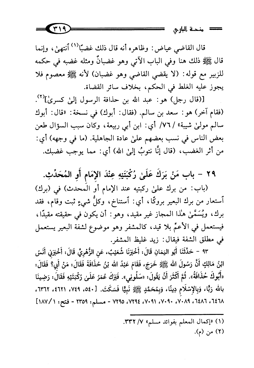 قال القاضي عياض: وظاهره أنه قال ذلك غضبًا (¬1) انتهى، وإنما قال - صلى الله عليه وسلم - ذلك هنا وفي الباب الآتي وهو غضبانٌ ومثله غضبه في حكمه للزبير مع قوله: (لا يقضي القاضي وهو غضبان) لأنه - صلى الله عليه وسلم - معصوم فلا يجوز عليه الغلط في الحكم، بخلاف سائر القضاة.