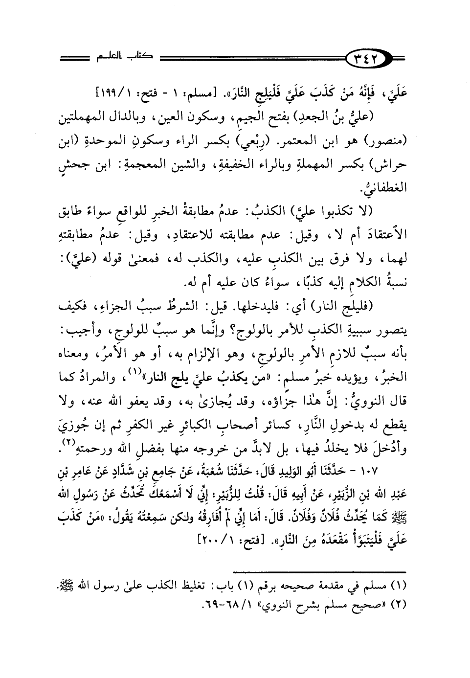 (¬1) مسلم في مقدمة صحيحه برقم (1) باب: تغليظ الكذب على رسول الله - صلى الله عليه وسلم -.