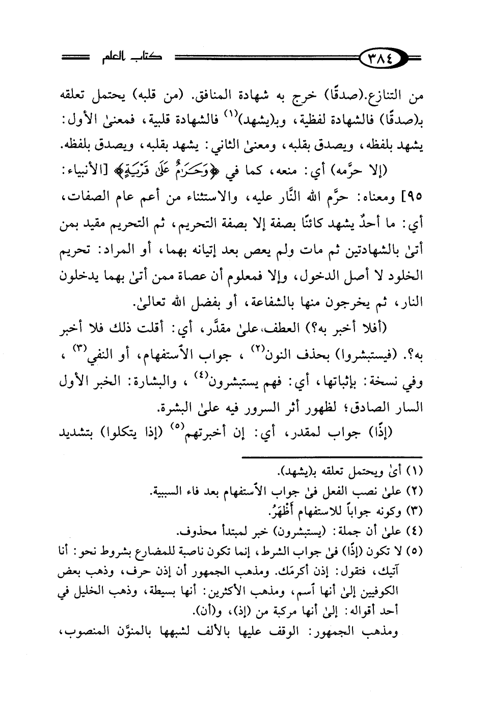 من التنازع. (صدقًا) خرج به شهادة المنافق. (من قلبه) يحتمل تعلقه بـ (صدقًا) فالشهادة لفظية، وبـ (يشهد) (¬1) فالشهادة قلبية، فمعنى الأول: يشهد بلفظه، ويصدق بقلبه، ومعنى الثاني: يشهد بقلبه، ويصدق بلفظه.