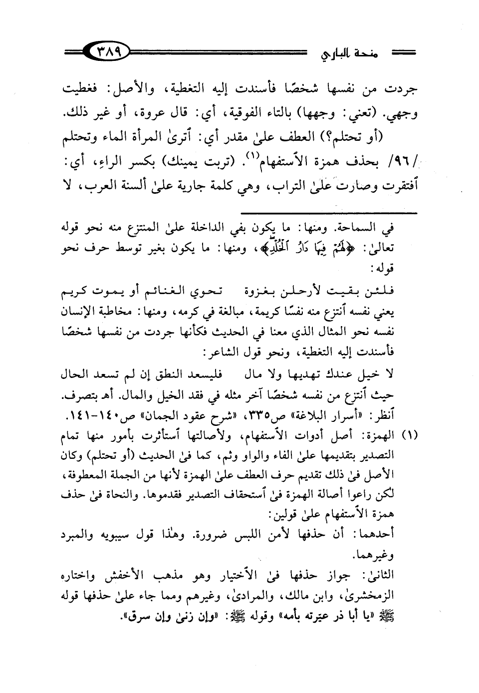 (¬1) الهمزة: أصل أدوات الاستفهام، ولأصالتها استأثرت بأمور منها تمام التصدير بتقديمها على الفاء والواو وثم، كما في الحديث (أو تحتلم) وكان الأصل في ذلك تقديم حرف العطف على الهمزة لأنها من الجملة المعطوفة، لكن راعوا أصالة الهمزة في أستحقاف التصدير فقدموها. والنحاة في حذف همزة الاستفهام على قولين:
