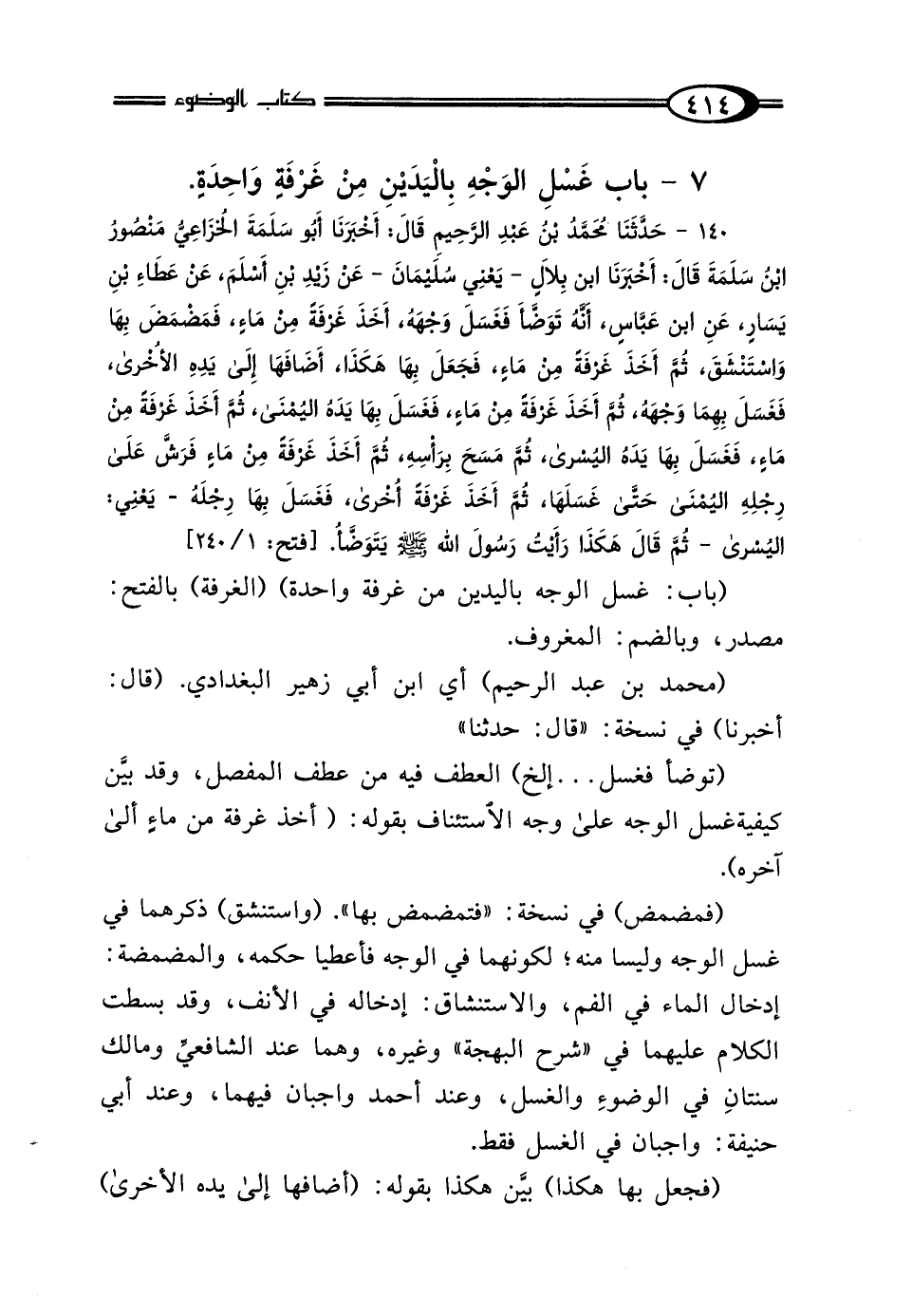 (باب: غسل الوجه باليدين من غرفة واحدة) (الغرفة) بالفتح: مصدر، وبالضم: المغروف.
