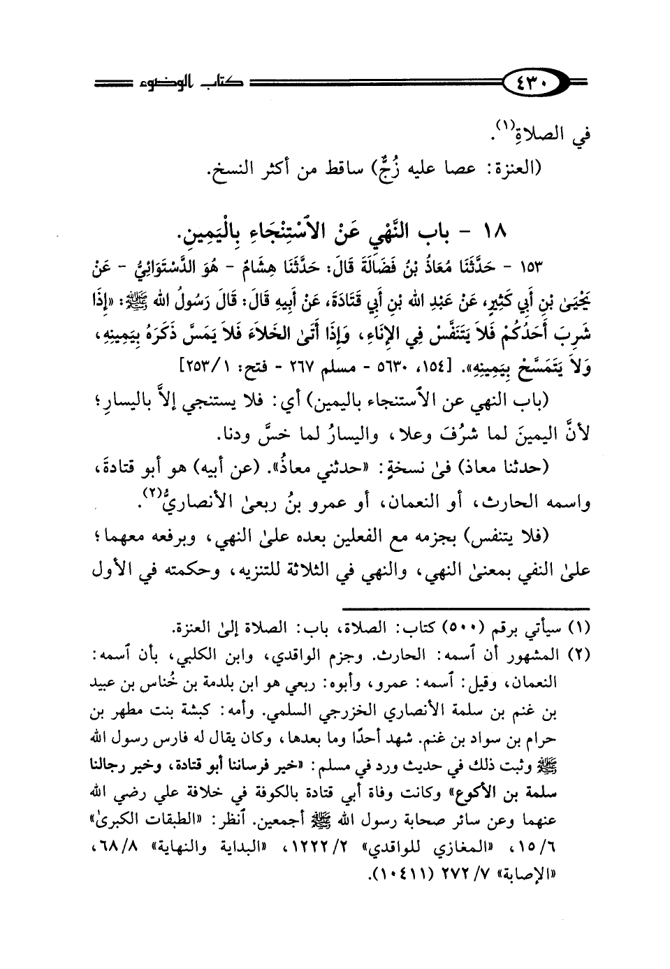 18 - بَابُ النَّهْيِ عَنْ الاسْتِنْجَاءِ بِاليَمِينِ.