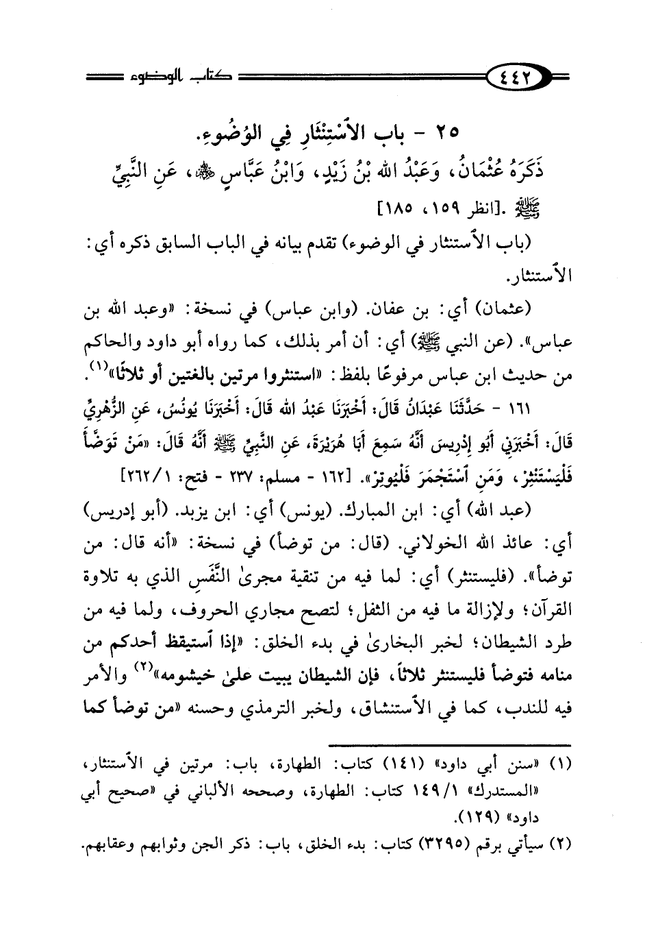 (¬1) "سنن أبي داود" (141) كتاب: الطهارة، باب: مرتين في الاستنثار، "المستدرك" 1/ 149 كتاب: الطهارة، وصححه الألباني في "صحيح أبي داود" (129).