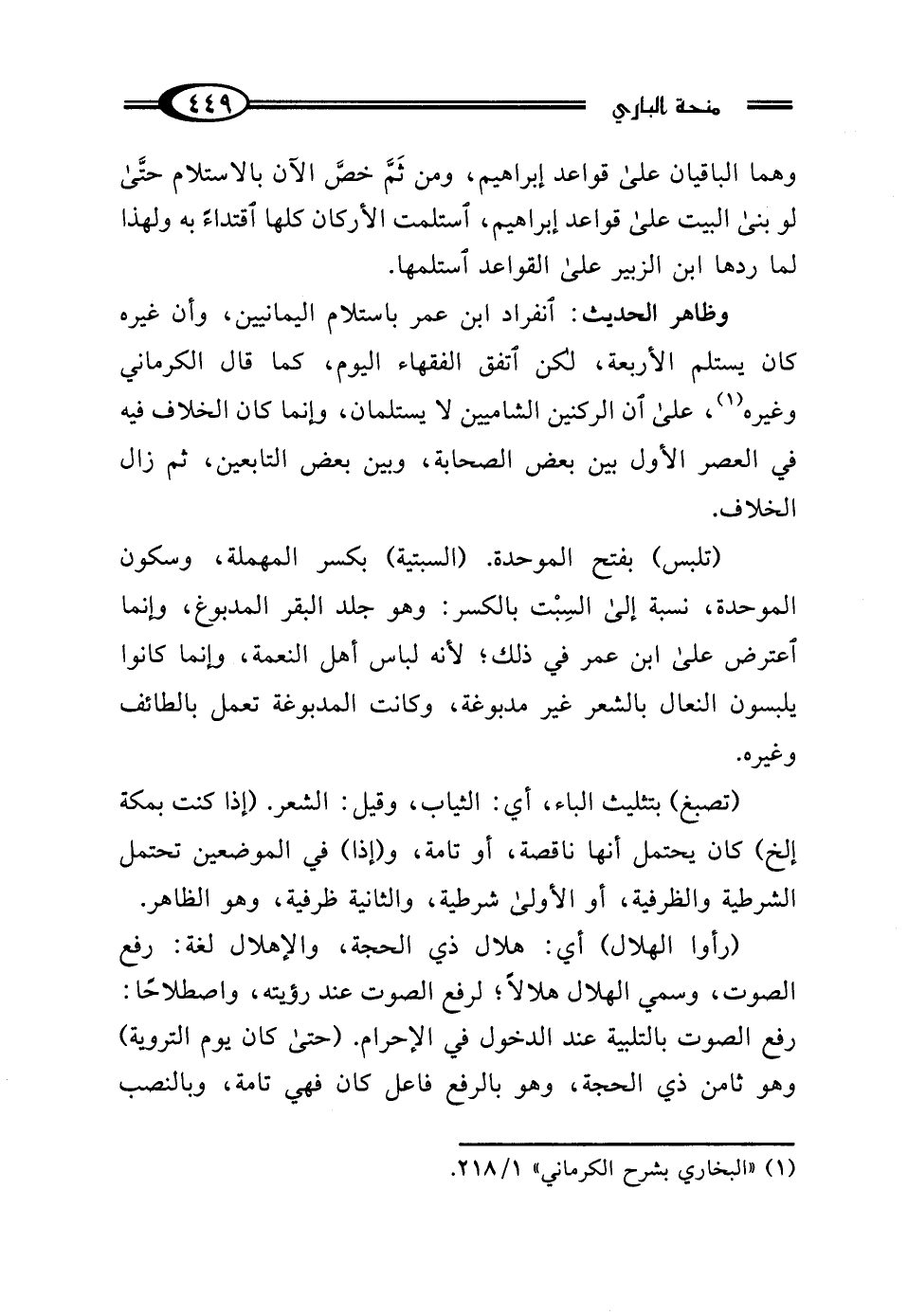 (¬1) "البخاري بشرح الكرماني" 1/ 218.
