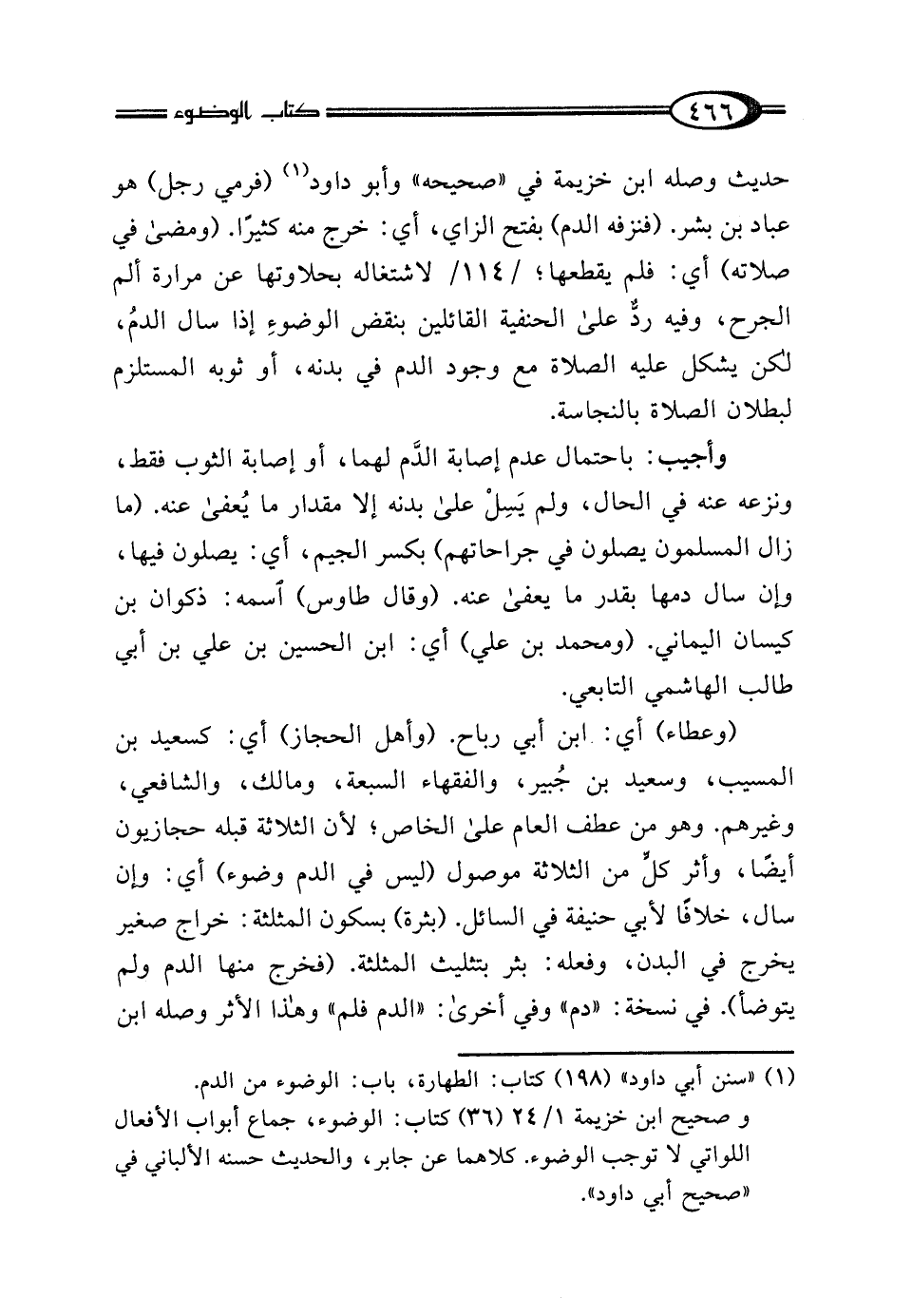 (¬1) "سنن أبي داود" (198) كتاب: الطهارة، باب: الوضوء من الدم.