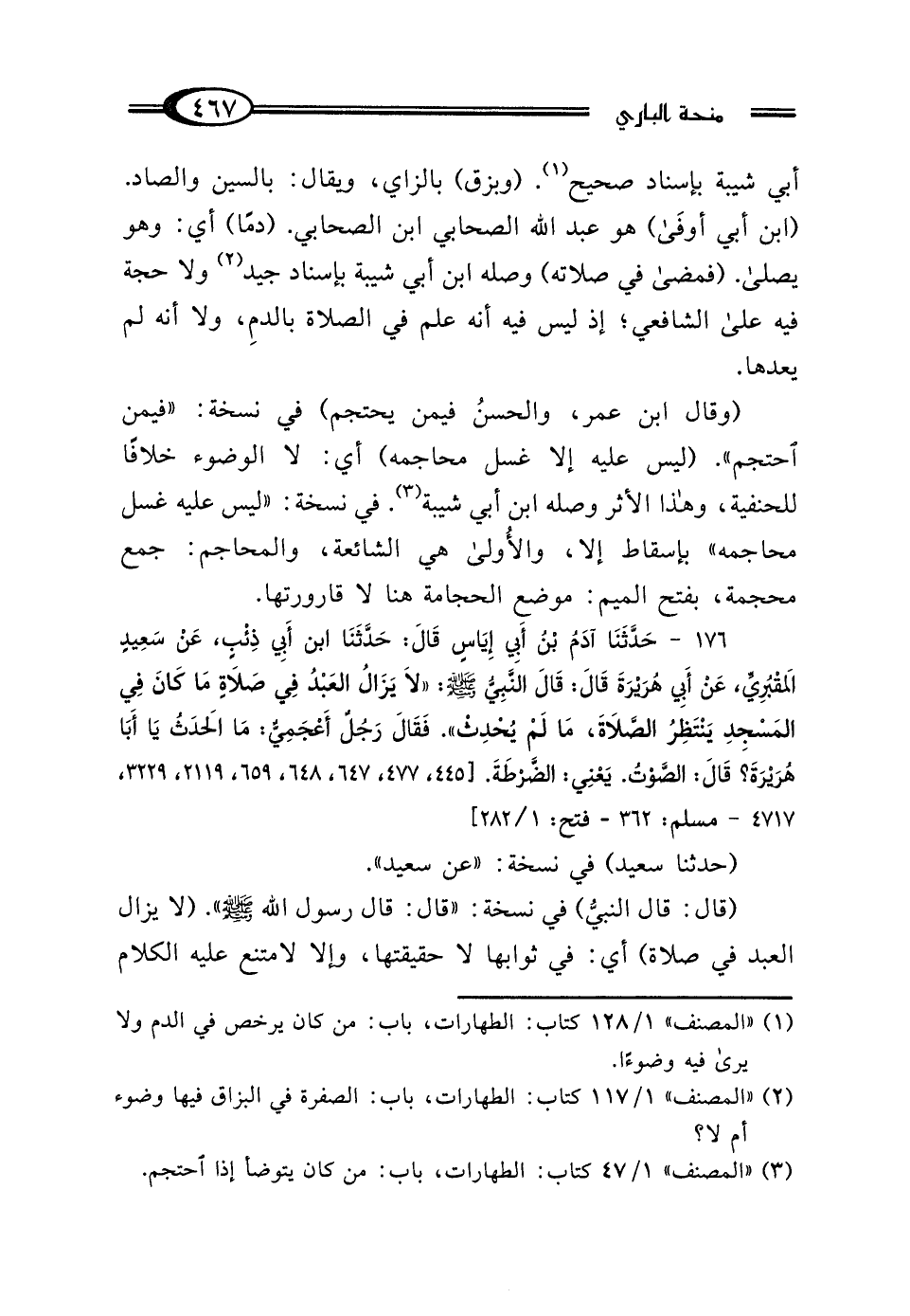 (¬3) "المصنف" 1/ 47 كتاب: الطهارات، باب: من كان يتوضأ إذا احتجم.