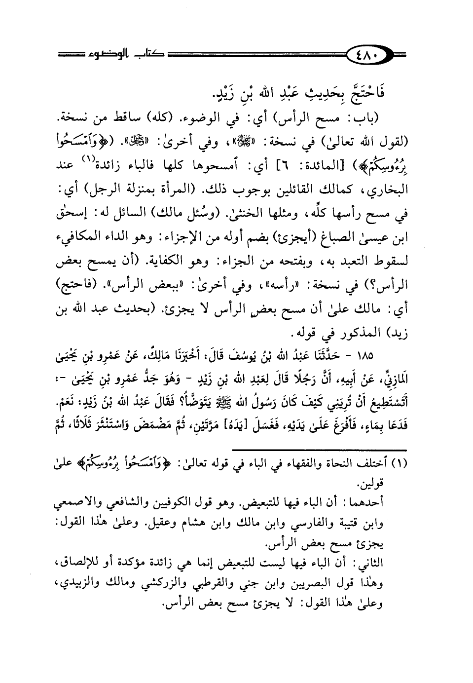 (¬1) اختلف النحاة والفقهاء في الباء في قوله تعالى: {وَامْسَحُوا بِرُءُوسِكُمْ} على قولين.