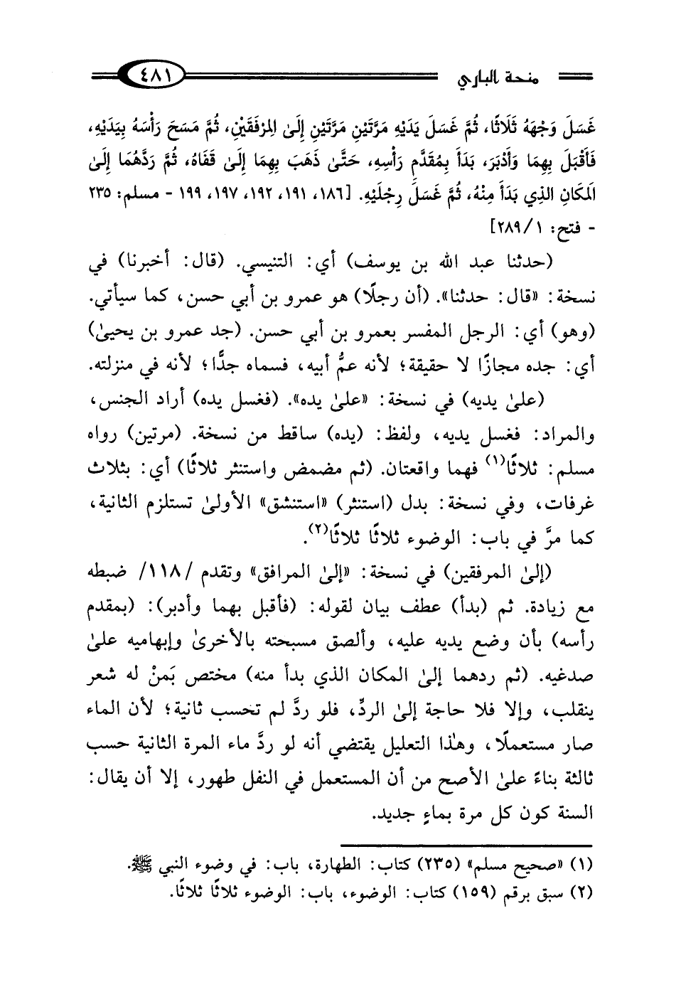 (¬1) "صحيح مسلم" (235) كتاب: الطهارة، باب: في وضوء النبي - صلى الله عليه وسلم -.