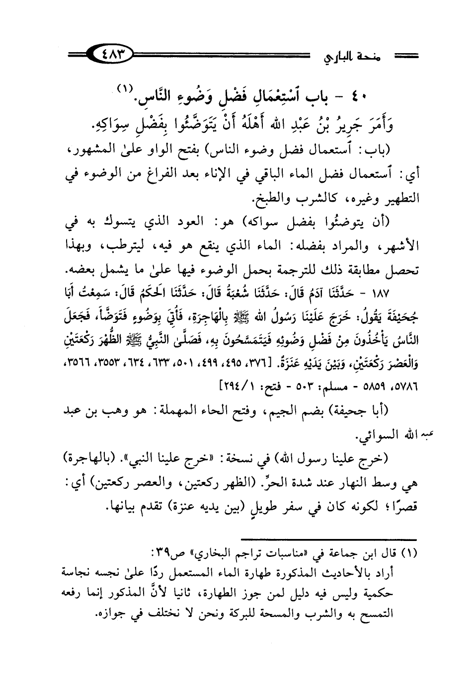 40 - بَابُ اسْتِعْمَالِ فَضْلِ وَضُوءِ النَّاسِ. (¬1)