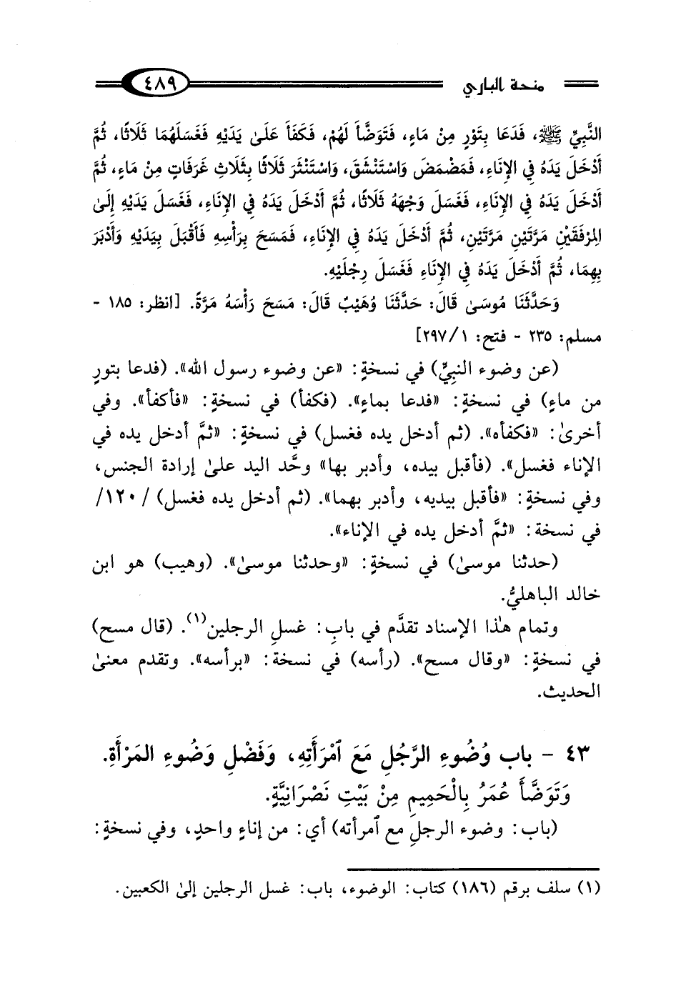 (¬1) سلف برقم (186) كتاب: الوضوء، باب: غسل الرجلين إلى الكعبين.