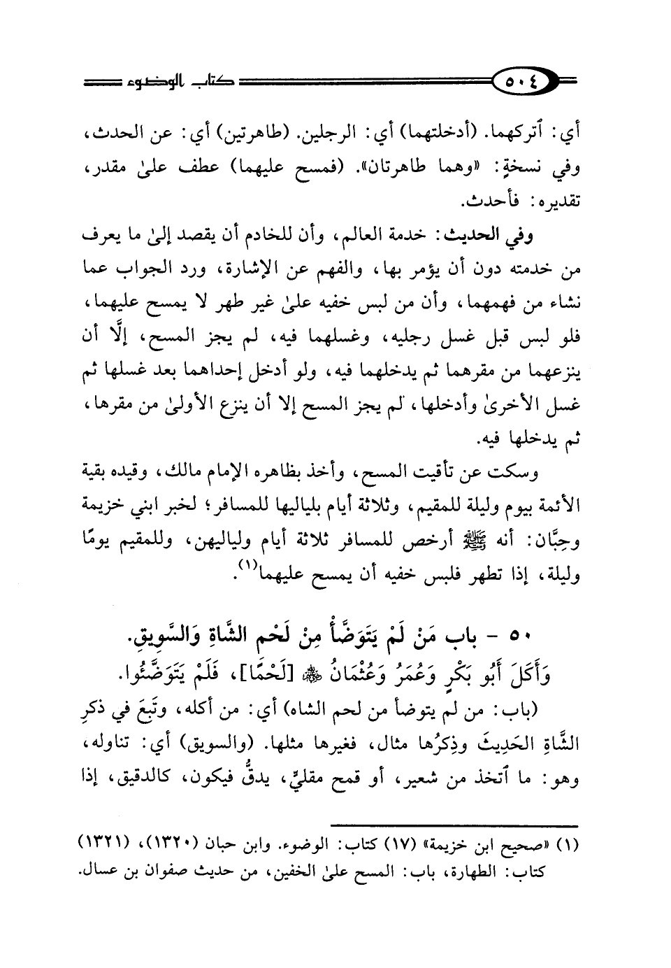 50 - بَابُ مَنْ لَمْ يَتَوَضَّأْ مِنْ لَحْمِ الشَّاةِ وَالسَّويقِ