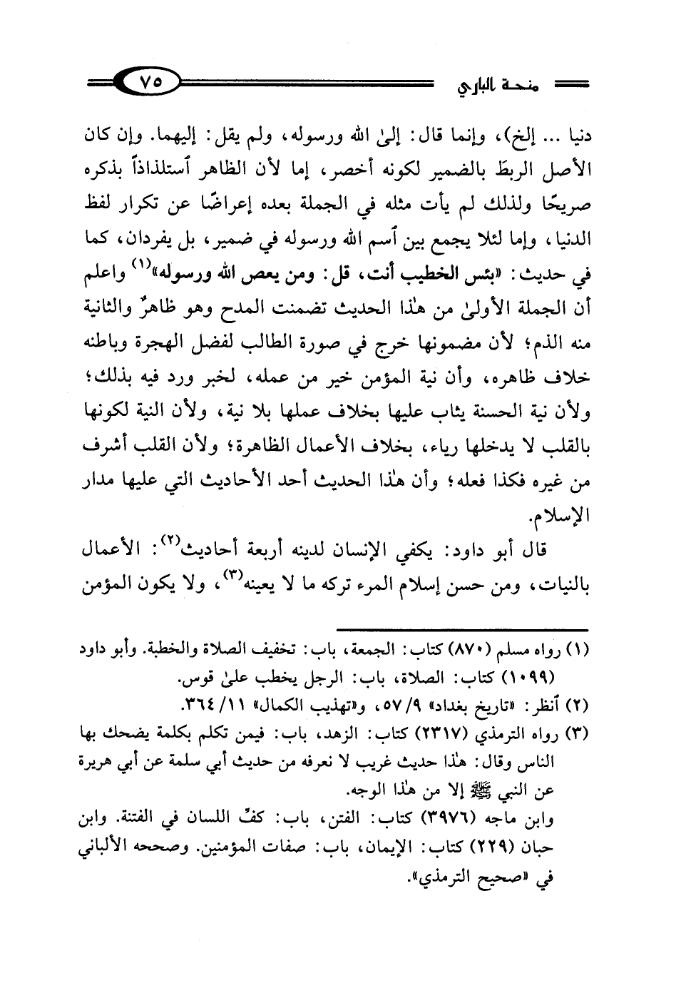 قال أبو داود: يكفي الإنسان لدينه أربعة أحاديث (¬2): الأعمال بالنيات، ومن حسن إسلام المرء تركه ما لا يعينه (¬3)، ولا يكون المؤمن