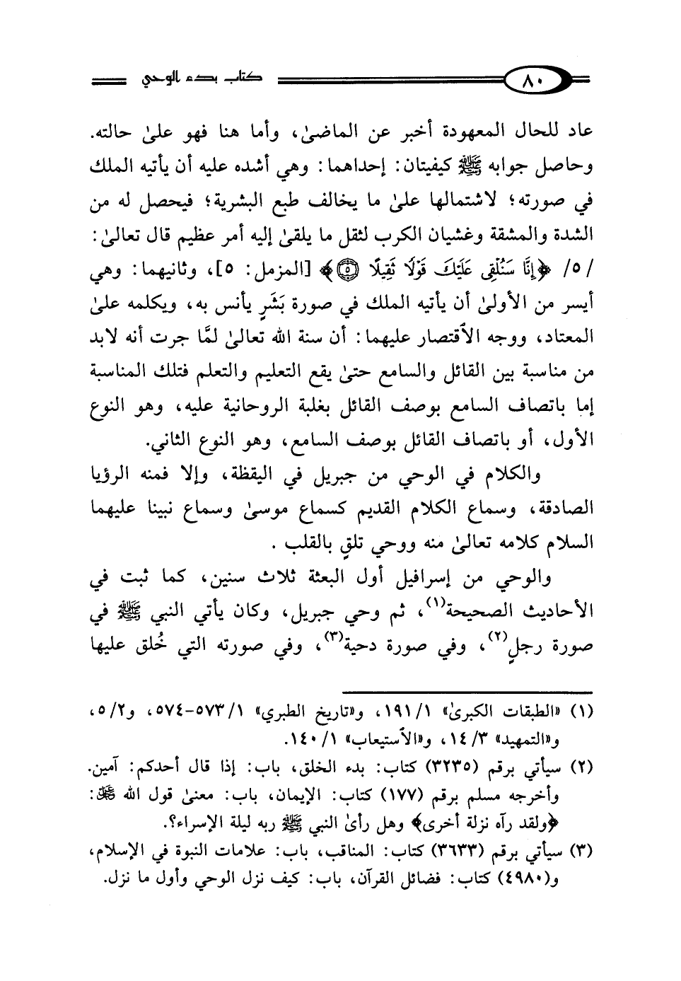 والكلام في الوحي من جبريل في اليقظة، وإلا فمنه الرؤيا الصادقة، وسماع الكلام القديم كسماع موسى وسماع نبينا عليهما السلام كلامه تعالى منه ووحي تلقِ بالقلب.