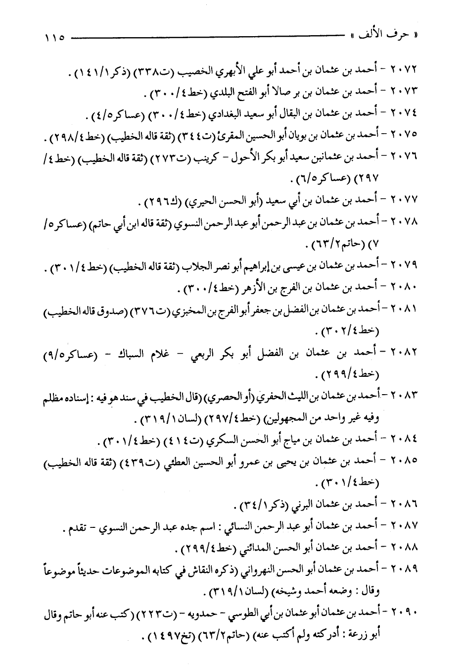 2083 - أحمد بن عثمان بن الليث الحفري (أو الحصري) (قال الخطيب في سند هو فيه: إسناده مظلم وفيه غير واحد من المجهولين (خط 4/ 297) (لسان 1/ 319).