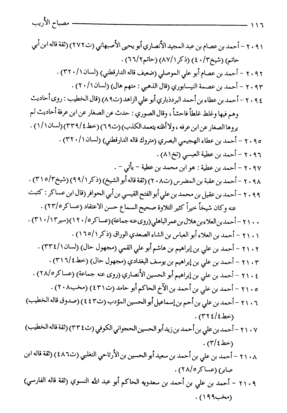 2091 - أحمد بن عصام بن عبد المجيد الأنصاري أبو يحيى الأصبهاني (ت 272) (ثقة قاله ابن أبي حاتم) (شيخ 3/ 40) (ذكر 1/ 87) (حاتم 2/ 66).