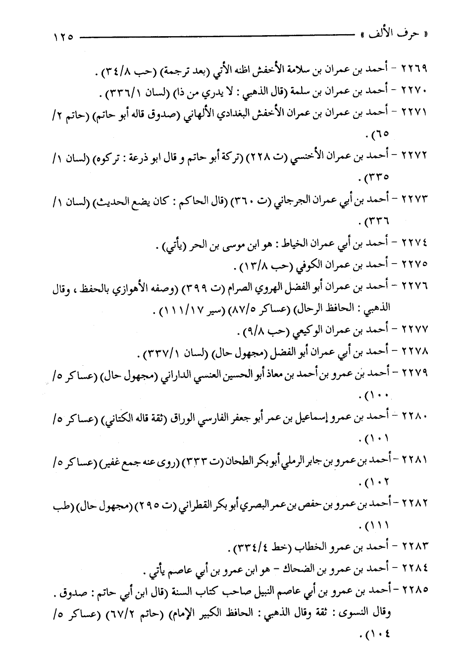 2276 - أحمد بن عمران أبو الفضل الهروي الصرام (ت 399) (وصفه الأهوازي بالحفظ، وقال الذهبي: الحافظ الرحال) (عساكر 5/ 87) (سير 17/ 111).