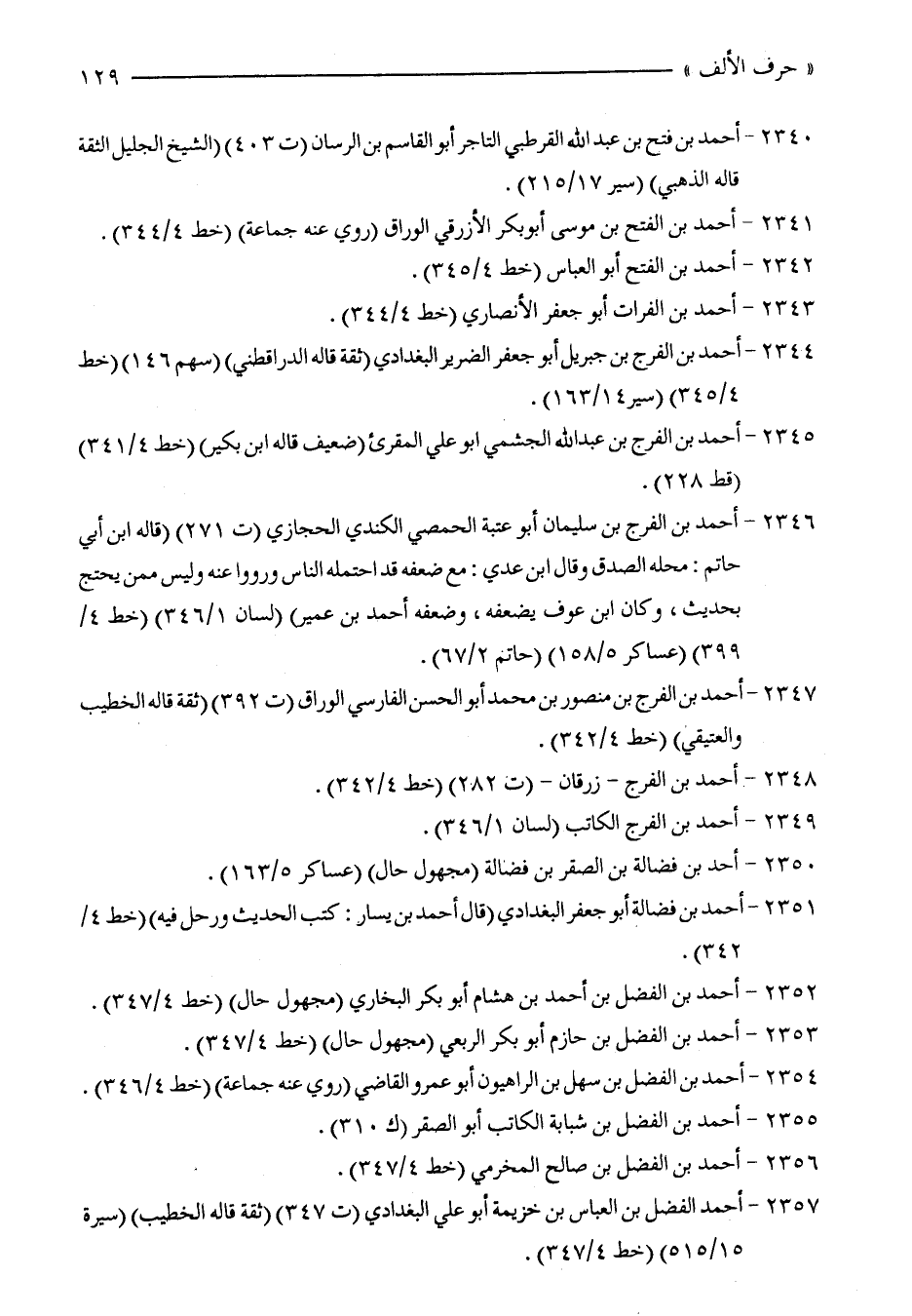 2357 - أحمد الفضل بن العباس بن خزيمة أبو علي البغدادي (ت 347) (ثقة قاله الخطيب) (سيرة 15/ 515) (خط 4/ 347).