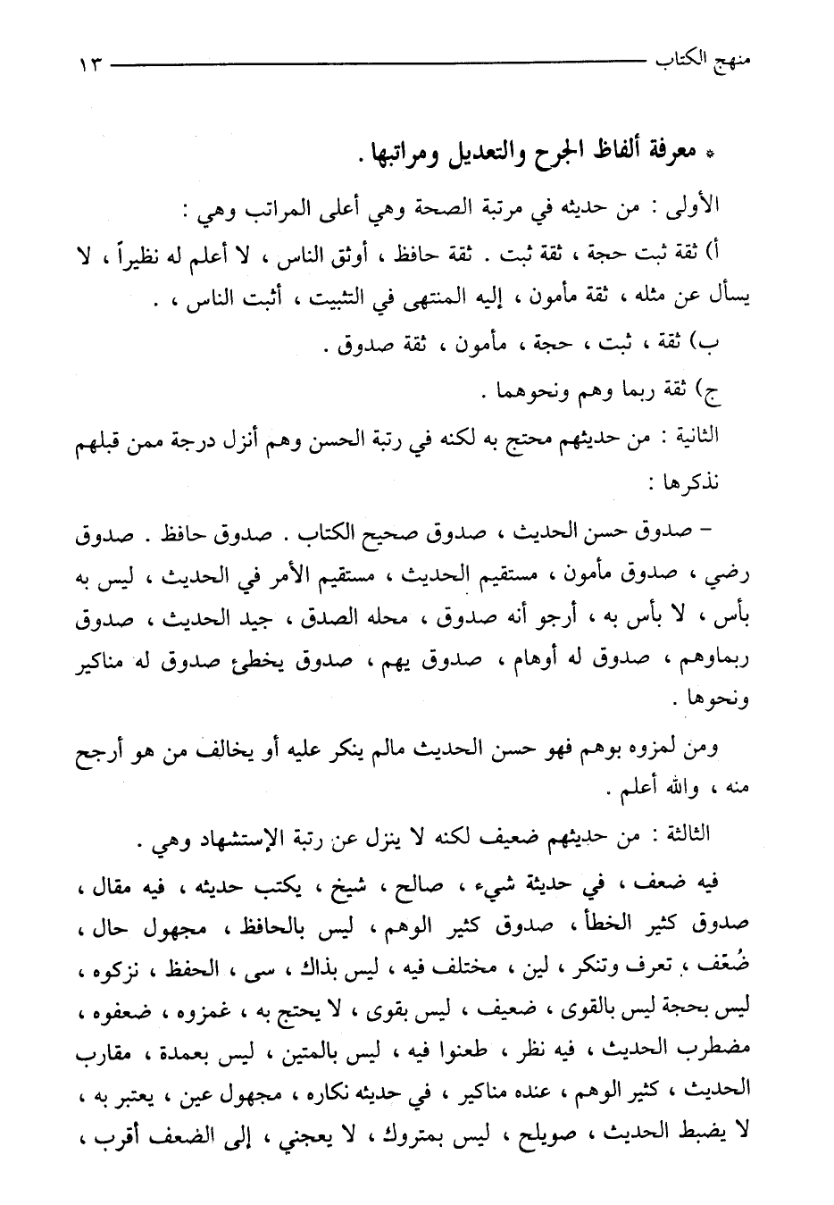 - صدوق حسن الحديث، صدوق صحيح الكتاب. صدوق حافظ. صدوق رضي، صدوق مأمون، مستقيم الحديث، مستقيم الأمر في الحديث، ليس به بأس، لا بأس به، أرجو أنه صدوق، محله الصدق، جيد الحديث، صدوق ربما وهم، صدوق له أوهام، صدوق يهم، صدوق يخطيء صدوق له مناكير ونحوها.