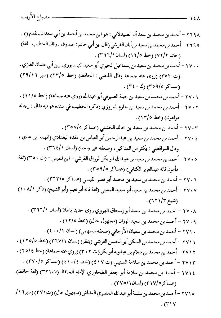 2700 - أحمد بن محمد بن سعيد بن إسماعيل الحيري أبو سعيد النيسابوري -ابن أبي عثمان الغازي- (ت 353) (روى عنه جماعة وقال الذهبي: الحافظ) (خط 5/ 23) (سير 16/ 29) (عساكر 5/ 359) (ك 340).