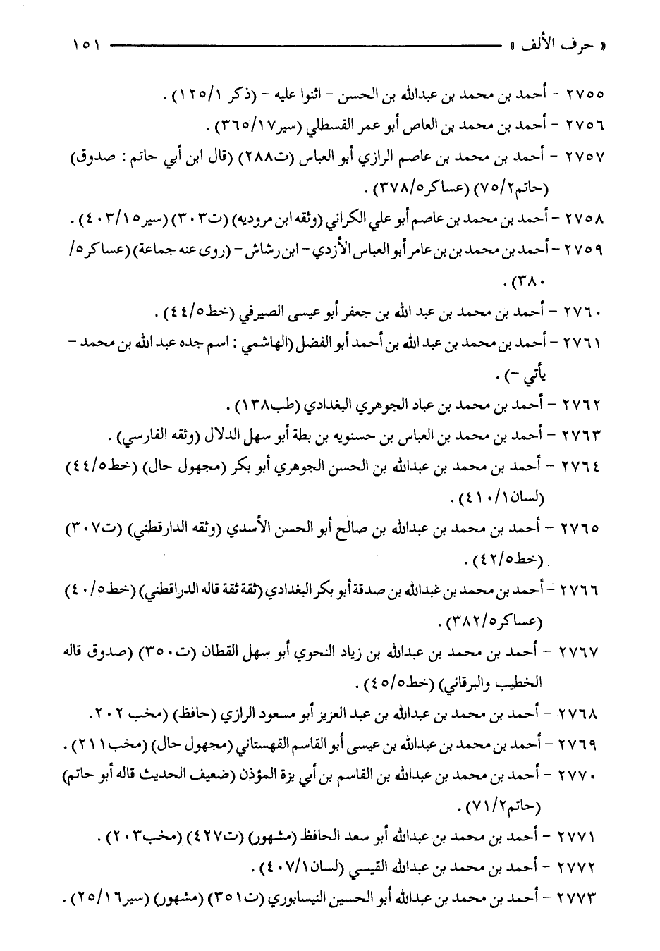 2755 - أحمد بن محمَّد بن عبد الله بن الحسن -أثنوا عليه- (ذكر 1/ 125).