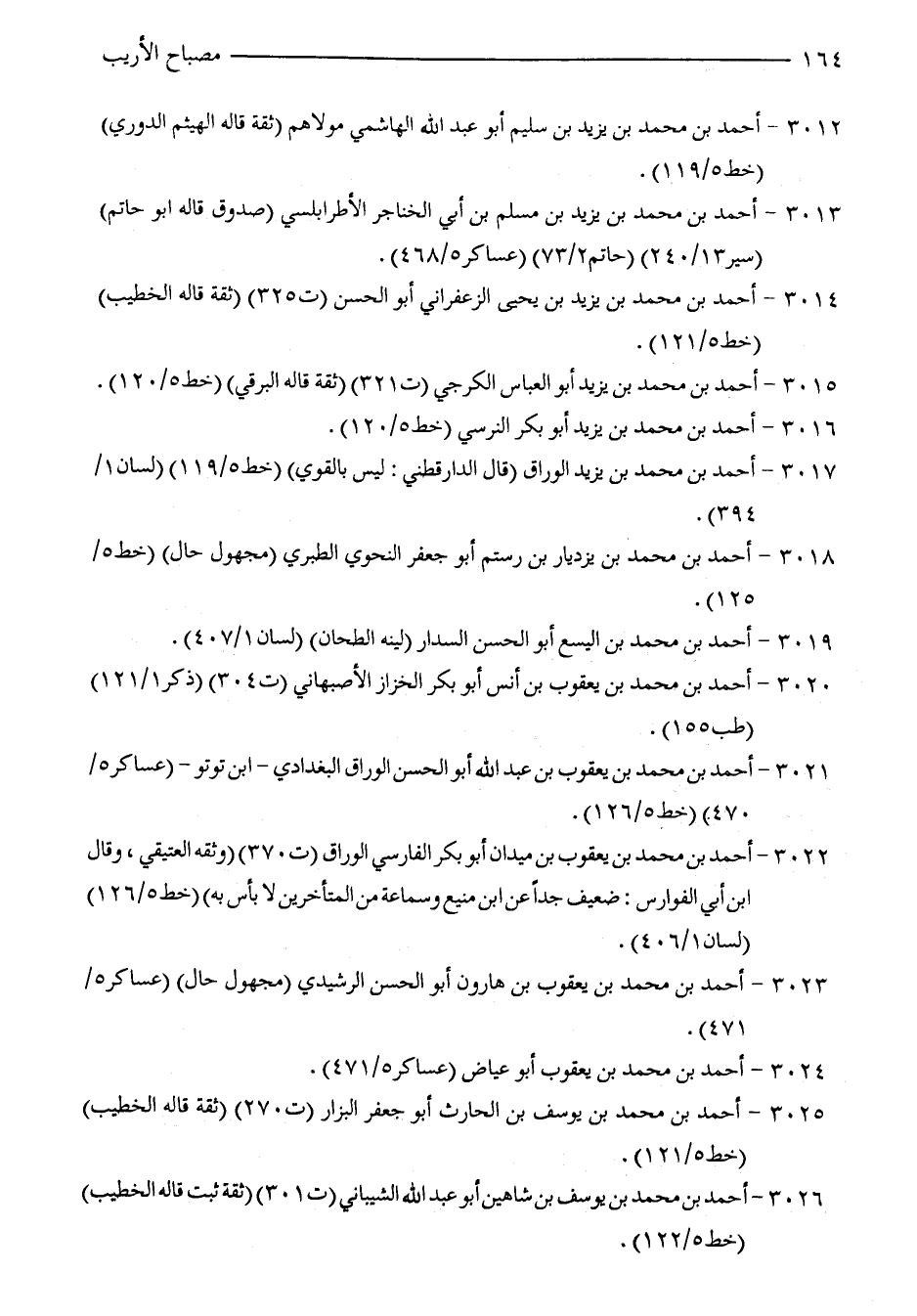 3017 - أحمد بن محمَّد بن يزيد الوراق (قال الدارقطني: ليس بالقوي) (خط 5/ 119) (لسان 1/ 394).