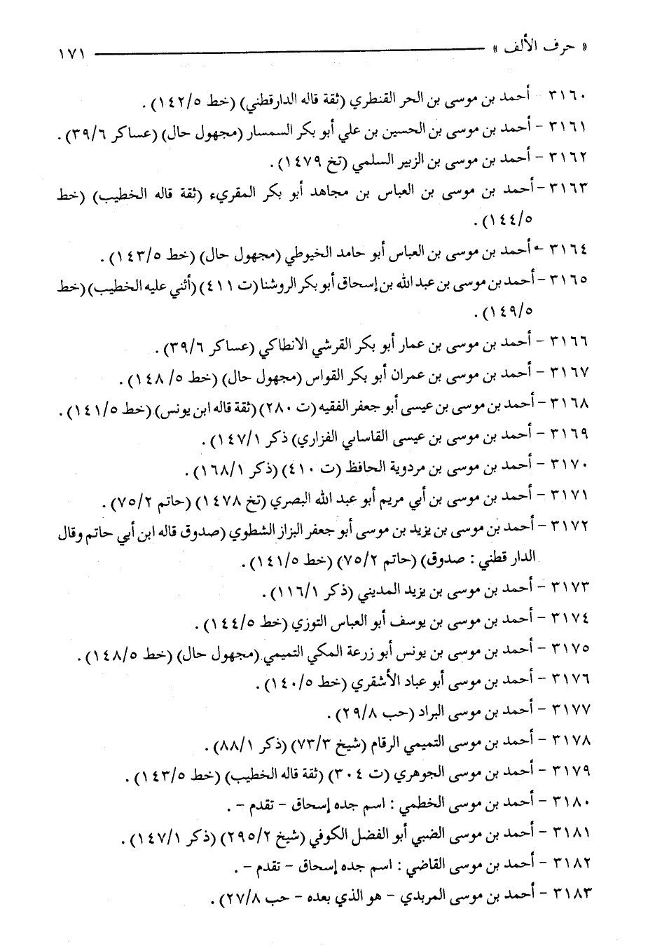 3167 - أحمد بن موسى بن عمران أبو بكر القواس (مجهول حال) (خط 5/ 148).