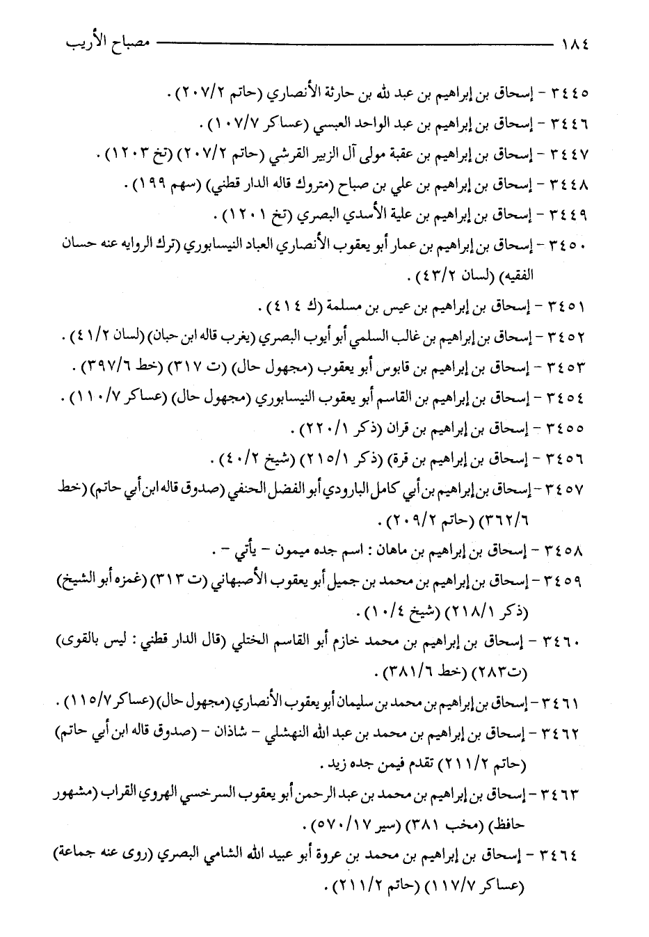 3448 - إسحاق بن إبراهيم بن علي بن صباح (متروك قاله الدارقطني) (سهم 199).