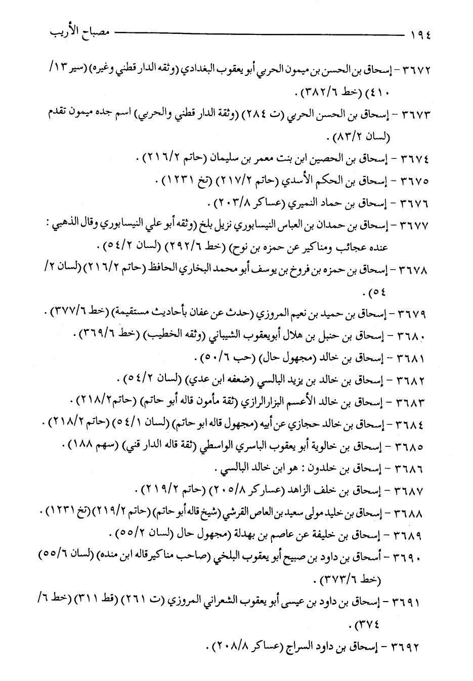 3680 - إسحاق بن حنبل بن هلال أبو يعقوب الشيباني (وثقه الخطيب) (خط 6/ 361).