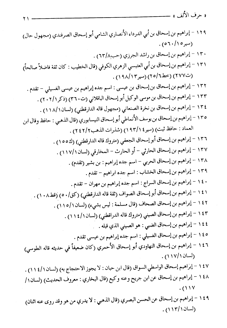 142 - إبراهيم بن إسحاق الصحاف (قال مسلمة: ليس بشيء) (لسان 1/ 115).