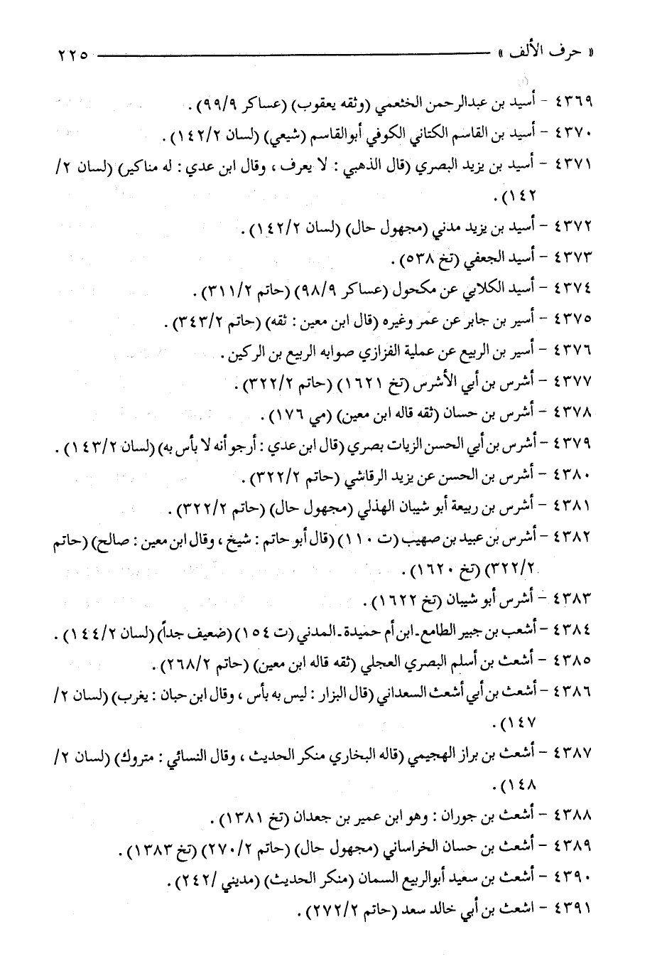 4390 - أشعث بن سعيد أبو الربيع السمان (منكر الحديث) (مديني /242).