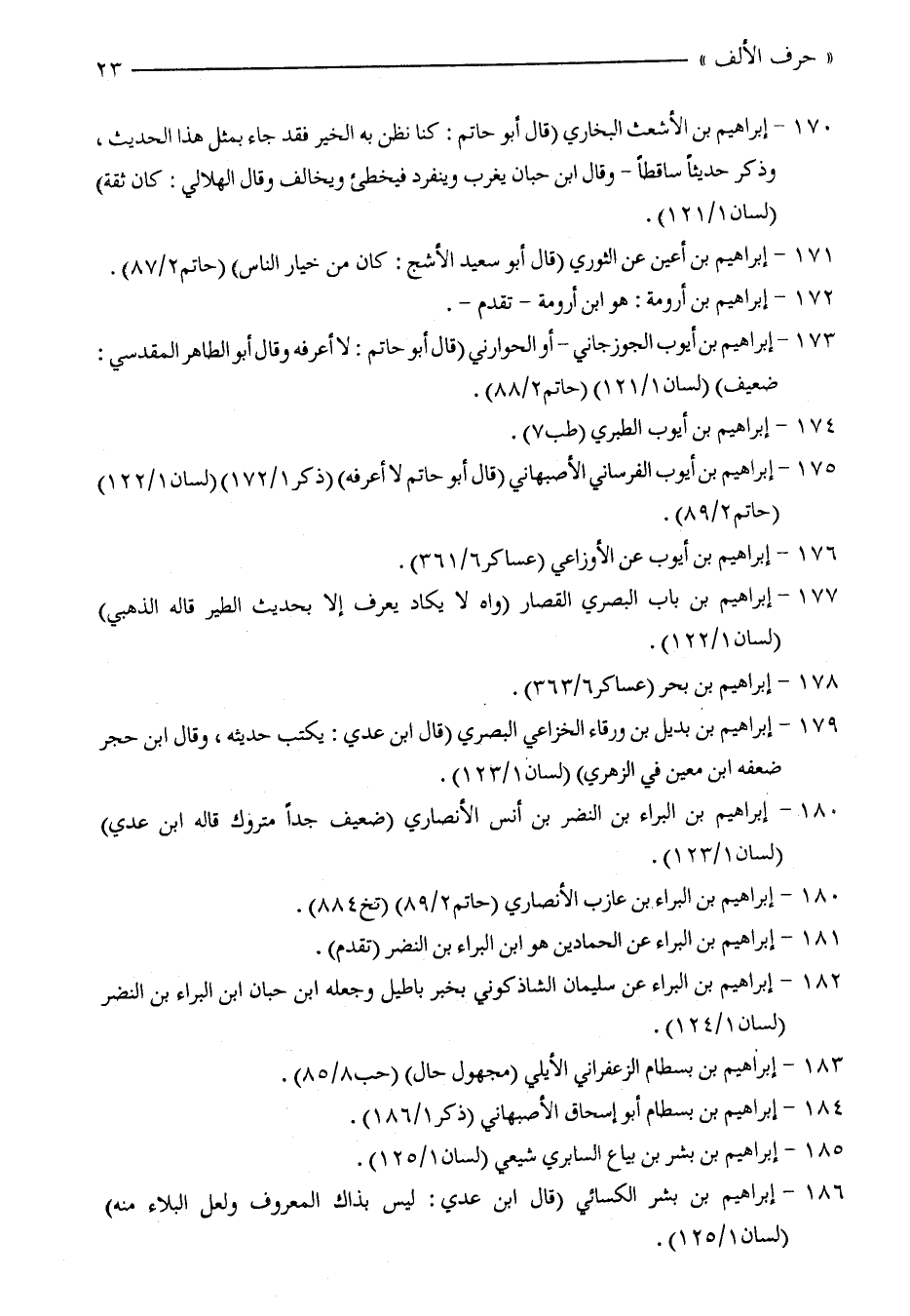 173 - إبراهيم بن أيوب الجوزجاني -أو الحوارني (قال أبو حاتم: لا أعرفه وقال أبو الطاهر المقدسي: ضعيف) (لسان 1/ 121) (حاتم 2/ 88).