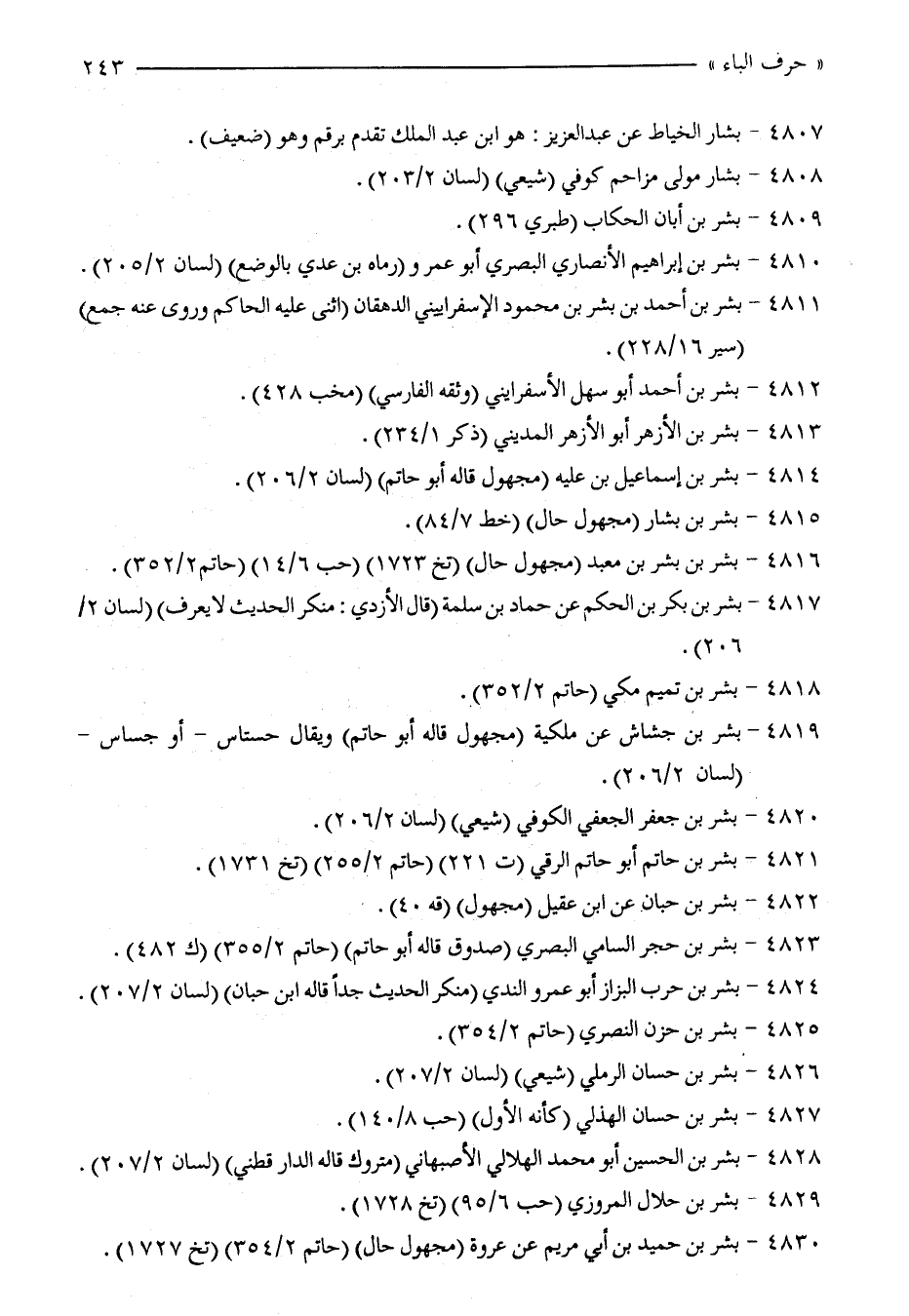 4826 - بشر بن حسان الرملي (شيعي) (لسان 2/ 207).