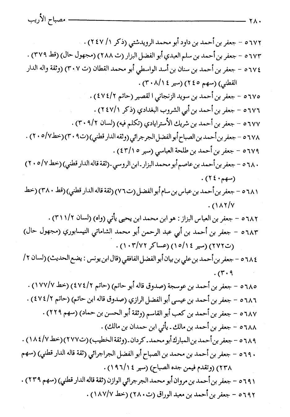 5678 - جعفر بن أحمد بن الصباح أبو الفضل الجرجرائي (وثقه الدارقطني) (ت 309) (خط 7/ 205).
