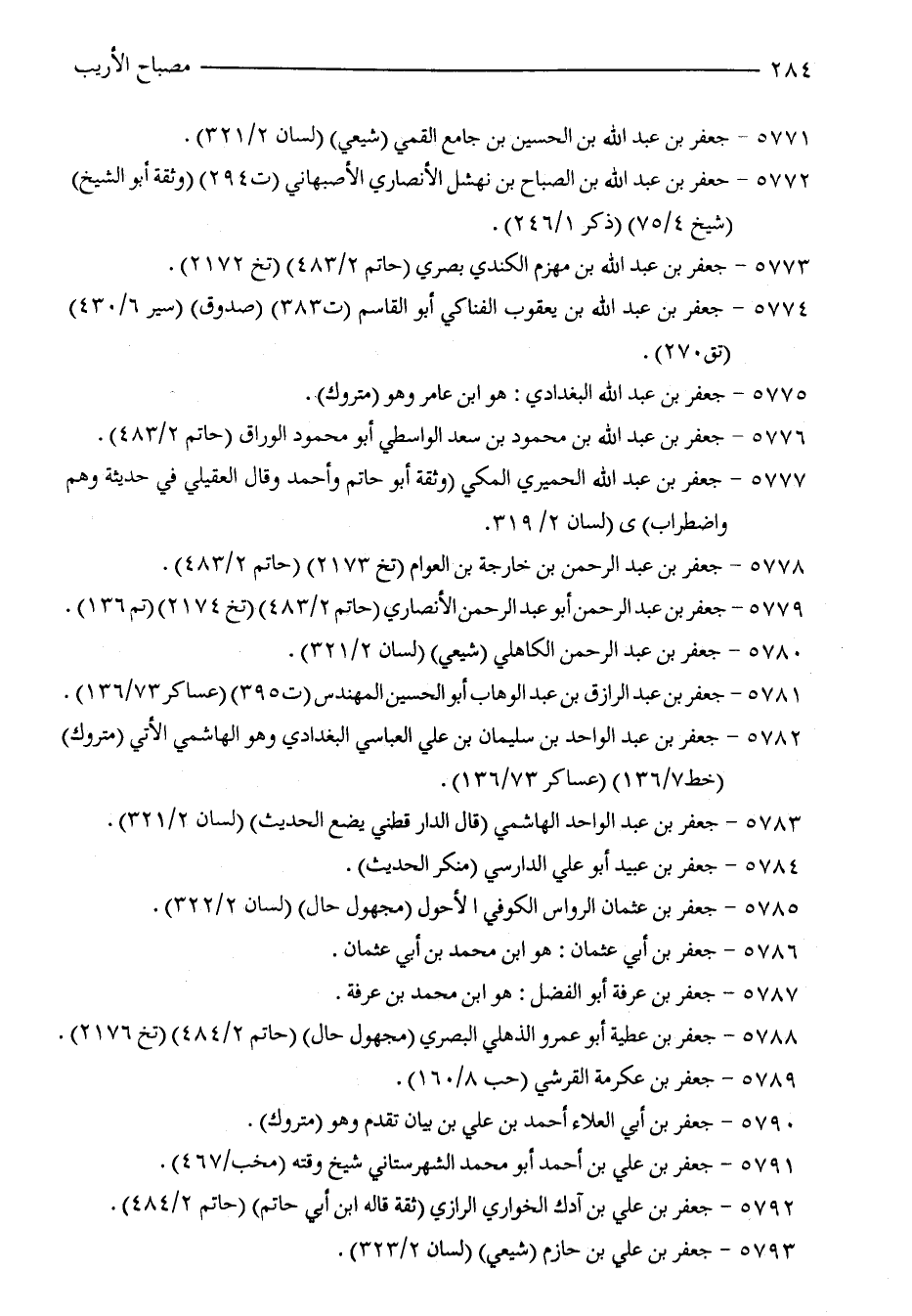 5772 - جعفر بن عبد الله بن الصباح بن نهشل الأنصاري الأصبهاني (ت 294) (وثقة أبو الشيخ) (شيخ 4/ 75) (ذكر 1/ 246).