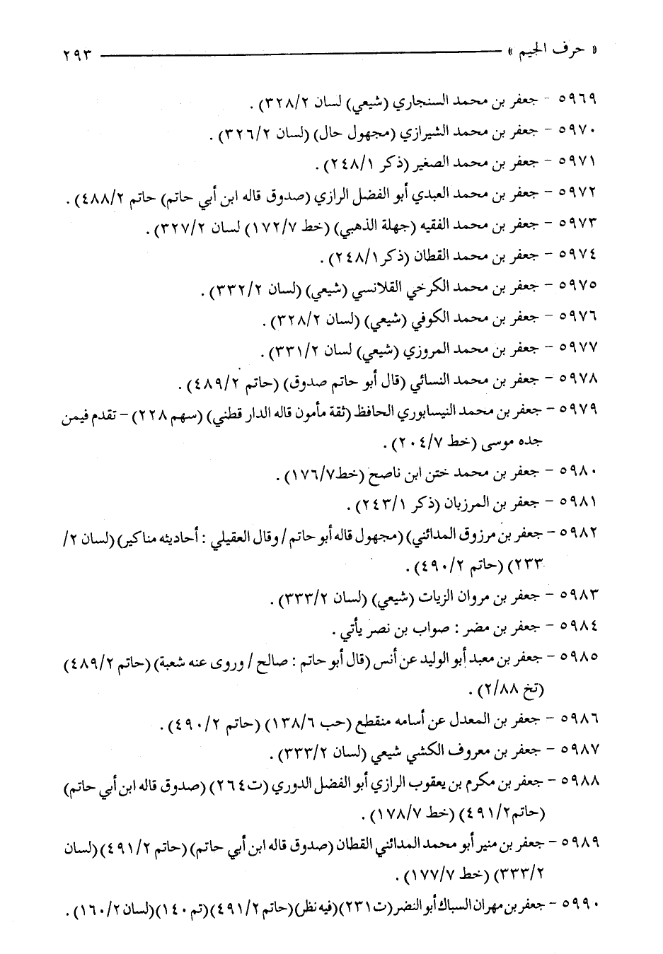 5969 - جعفر بن محمَّد السنجاري (شيعي) (لسان 2/ 328).
