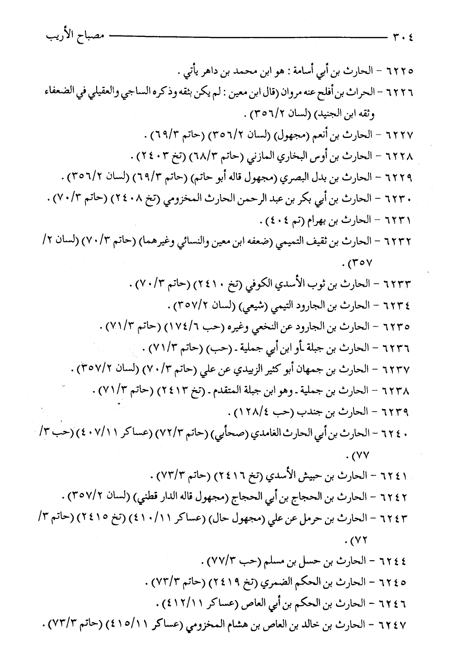 6240 - الحارث بن أبي الحارث الغامدي (صحابي) (حاتم 3/ 72) (عساكر 11/ 407) (حب 3/ 77).