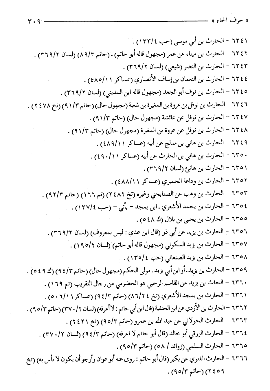 6342 - الحارث بن ميناء عن عمر (مجهول قاله أبو حاتم) - (حاتم 3/ 89) (لسان 2/ 369).